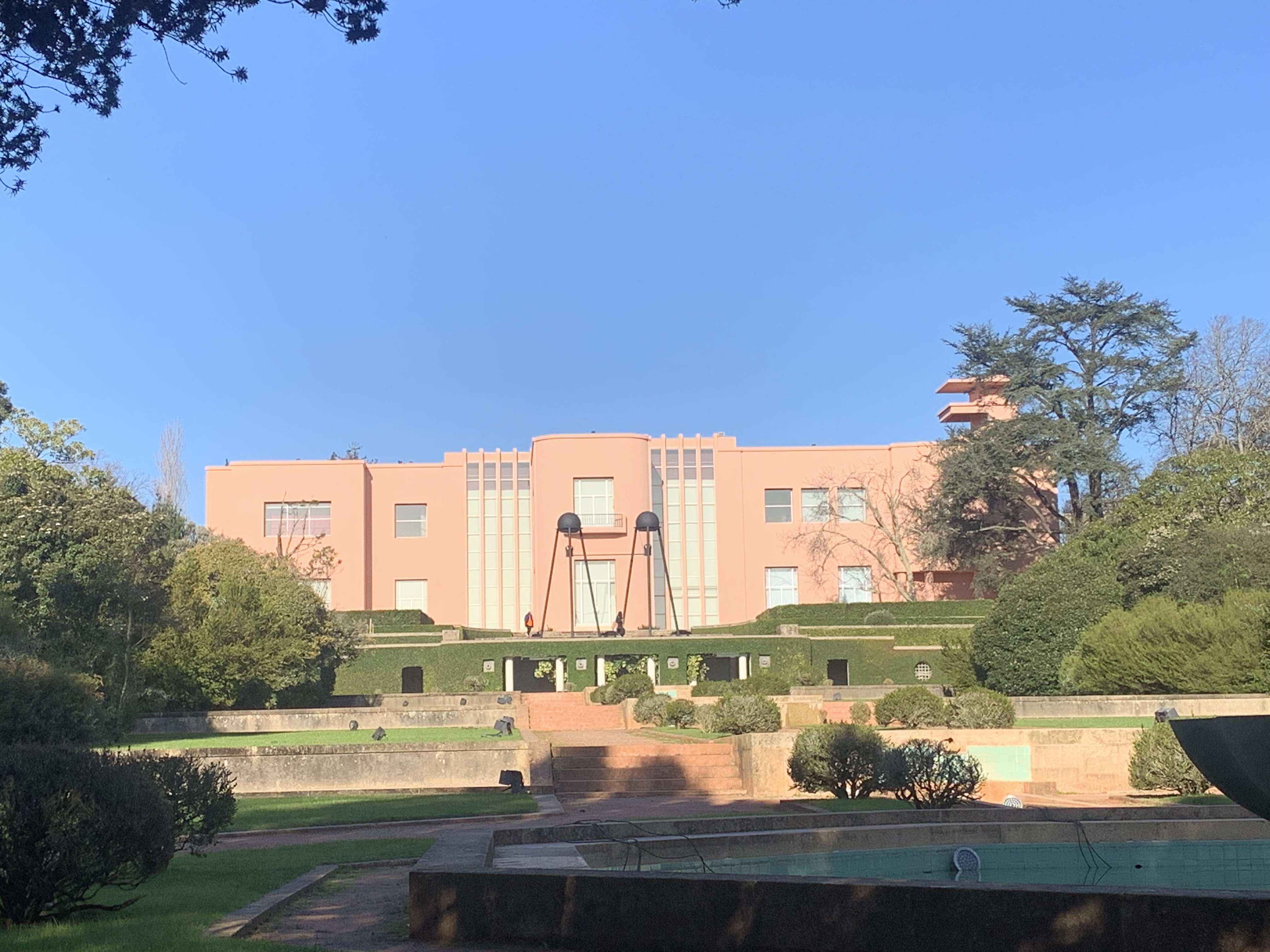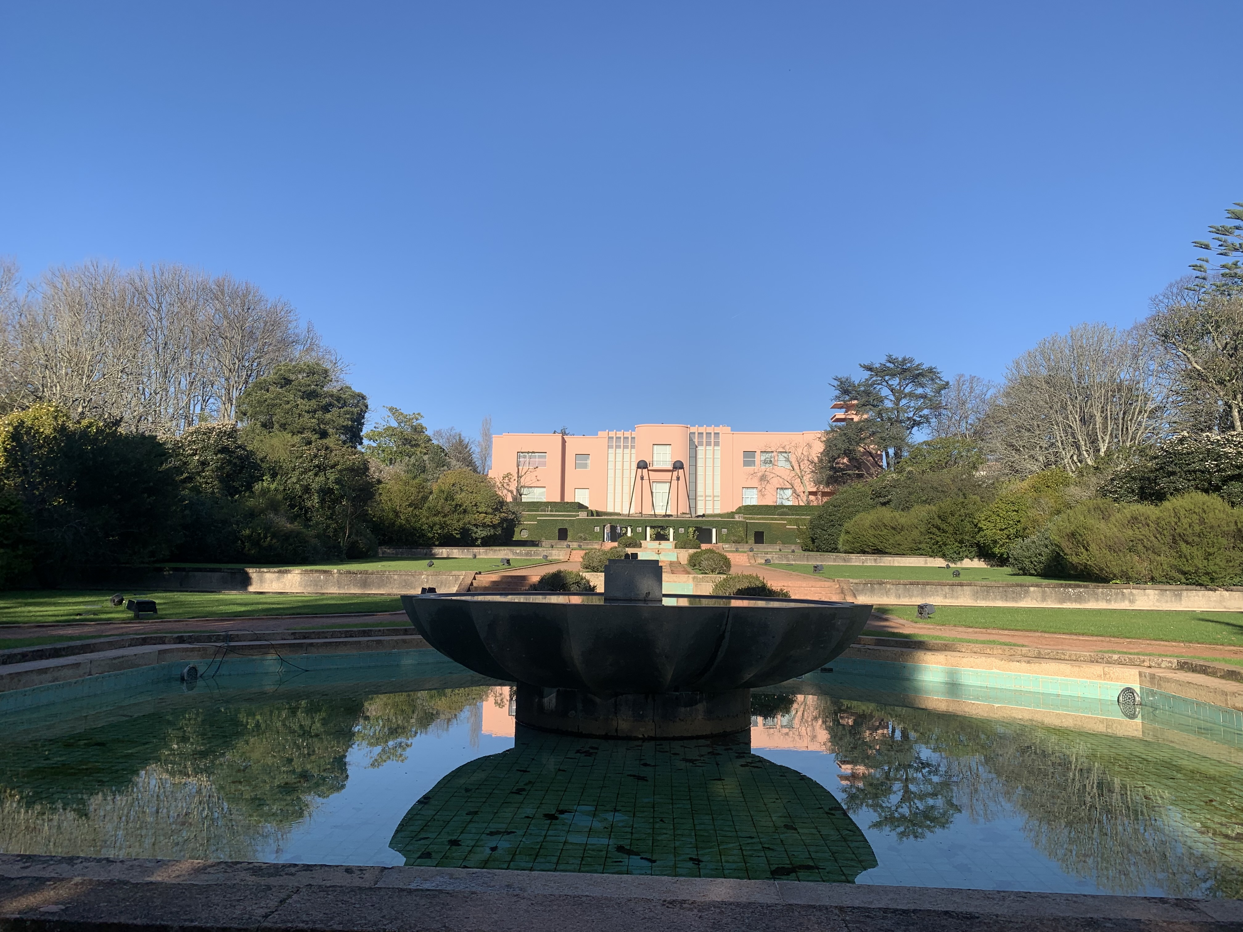 I have mixed feelings when it comes to modern art… You know, I feel like artists forgot that art should lift the spirit up, bring some light, beauty, can serve a higher purpose. At least in my understanding. Amid that I chose to visit the Serralves because it offers modern art museum, a dreamy-looking Art Deco villa and extensive gardens perfect to explore on a sunny January day. I saw the first magnolia blossom this year! The entry fee of 20 Euro for all seems not that much. To my surprise, the villa showed a large collection of paintings by Joan Miro, such a positive, colorful and happy artist. This was defenetly the highlight of the visit. We saw some sculptures in the gardens, a headache-causing “immersive experience” in a pavilion designed by a Japanese artist (don’t go!) and walked on a tree-top walkaway, which was fun. The museum itself is housed in a wonderful white building with clean shapes, beautiful shadows and great to move around. The art… well. None of the displays made any great impression so I will skip that. Enjoy some shots from Miro and the gardens, as well as the villa, which has a magnificent bathroom made of pink marble.